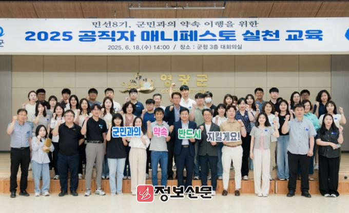 영광군(군수 장세일)은 18일 군청 대회의실에서, 공약이행의 실천력을 높이고 공직자의 책임성을 강화하기 위한 ‘2025 공직자 매니페스토 실천 교육’을 실시했다.