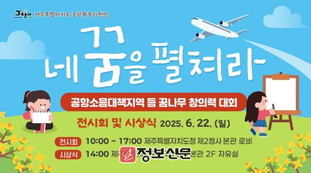 제주도는 지난 5월 공모한 ‘네 꿈을 펼쳐라’ 수상작 전시회 및 시상식을 22일 개최한다. 한국공항공사 공모사업에 선정돼 제주도가 주최한 이번 대회는 비행기.하늘.바다를 주제로 공항소음지역 어린이와 청소년들이 꿈과 재능을 펼칠 수 있는 기회를 마련했다.