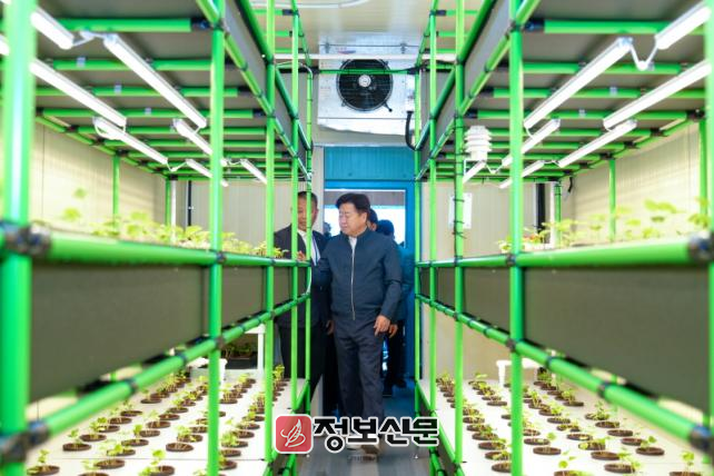 오영훈 지사는 “컨테이너 식물공장을 보면서 과학과 인공지능(AI), 디지털 분야의 기술이 뒷받침되지 않으면 고부가가치 농업으로 발전할 수 없다는 점을 다시 한번 확인했다”며 “푸드테크와 식물공장 등 스마트농업이 제주 농업 전반으로 확산될 수 있도록 최선을 다하겠다”고 강조했다.