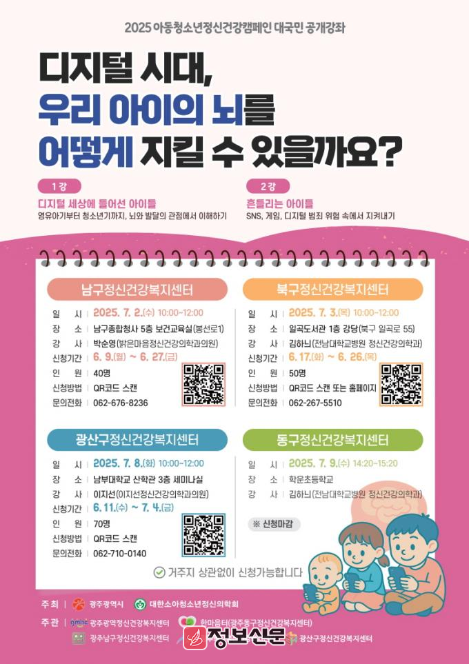 ![]() 광주광역시, 아동.청소년 정신건강 대시민 공개강좌 운영 |