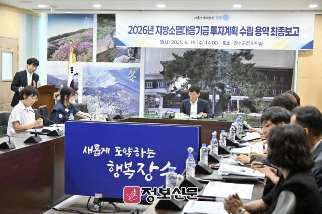 최훈식 군수는 “이번 보고회를 통해서 투자계획 전반을 다시 한번 면밀히 점검하고 지방소멸대응기금이 장수군의 생활인구 유입을 비롯한 인구 활력 회복과 지역 경쟁력 강화를 위한 전략적인 재원이 될 수 있도록 철저히 준비하겠다”며 “앞으로 투자계획서 최종 제출 전까지 완성도를 높여 기금 확보에 최선을 다하겠다”고 말했다.