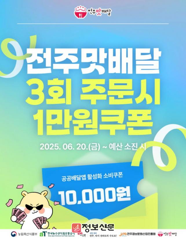 ![]() 전주시, 공공배달앱 활성화 위한 전주맛배달 소비쿠폰 행사 추진 |