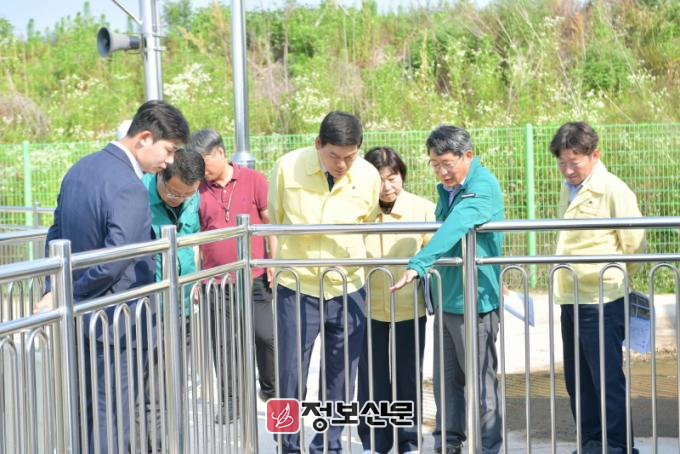 현장에는 정 군수를 비롯해 재난안전과, 한국농어촌공사 관계자 등이 참석해 배수펌프장 예비 가동과 시설 전반에 대해 점검했다.