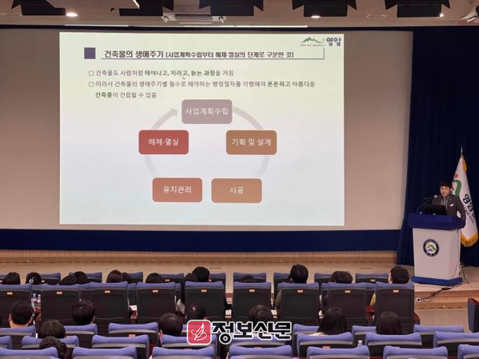 이날 교육으로 영암군은 올해 ‘똑똑한 행정 구현’을 목표로 진행했던 상반기 공직자 실무 역량 강화 교육을 마무리했다. 마지막 교육에는 8~9급, 7급 2년차, 장기 휴직 복직 직원들이 참석해 회계 분야 전문가인 한길옥 최공공공재정행정사무소 대표, 김태홍 공공건축팀장의 강의를들었다.