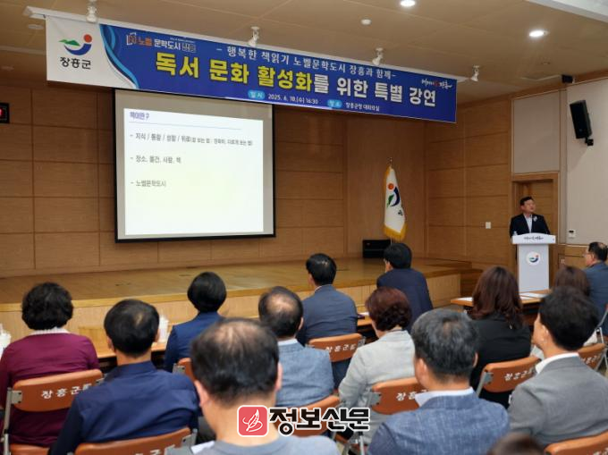 강연에는 김성 장흥군수를 포함한 장흥군 공직자 및 군민 150여 명이 참여했다. 강연에서는 ▲도서 선정 방법 ▲ 지속 가능한 독서 모임 운영 팁 ▲독서 목표 설정과 기록 습관화 등 실질적인 방법들이 제시됐다.