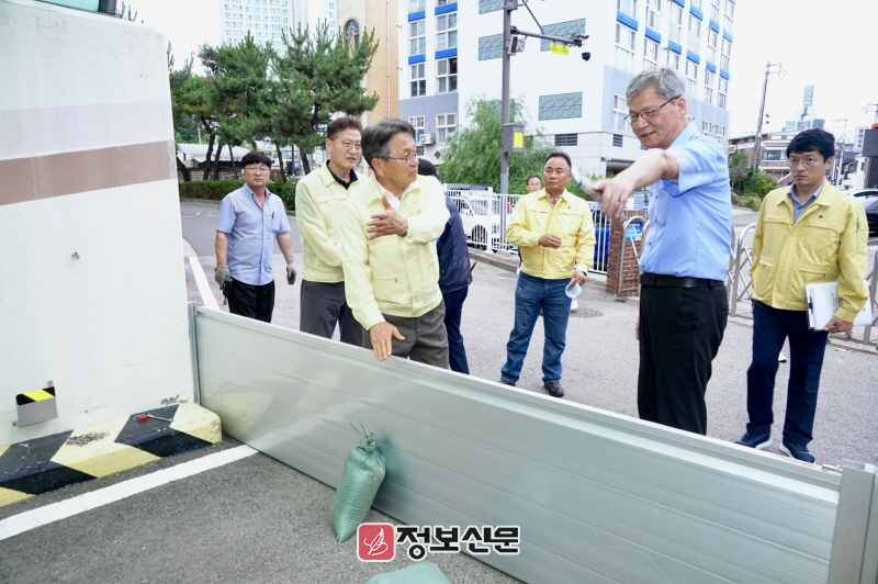 강기정 광주광역시장은 19일 오후 북구 신안동 공동주택 침수방지 물막이판 설치현장을 직접 찾아 살피고, 수방장비와 예찰체계 등 대비 상황을 면밀히 점검했다.