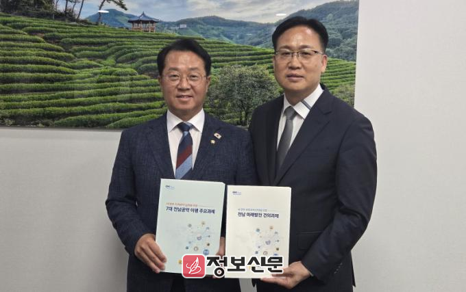 주요 건의 과제는 ▲의대 없는 전남에 ‘통합대학교 국립의과대학’ 설립 ▲‘솔라시도 AI 슈퍼클러스터 허브’ 등 에너지 신도시 조성 ▲‘석유화학·철강산업 대전환’ 메가 프로젝트 ▲AI 첨단 농‧축산업 융복합지구 조성 ▲‘우주발사체 산업 융복합 클러스터’ 조성 ▲무안국제공항 동북아 대표 관문공항 육성 등 전남의 미래발전을 위한 핵심 정책이 다수 포함됐다.