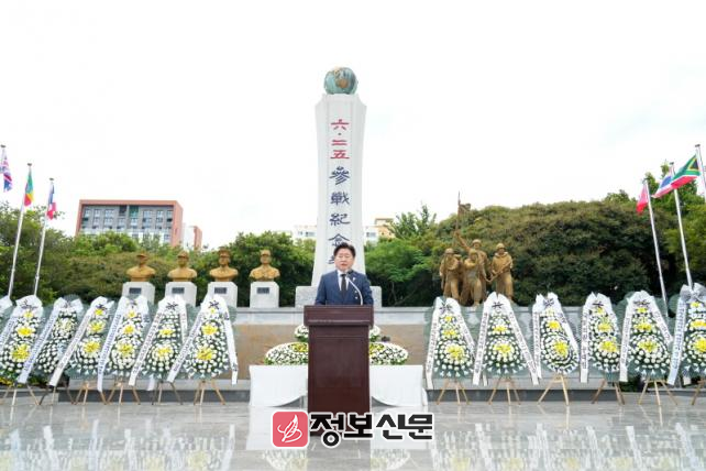 특히, 제주 출신 6·25전쟁 호국영웅 4인인 ▲고태문 대위(구좌읍 출신, 351고지 방어 전사) ▲강승우 중위(성산읍 출신, 백마고지 전사) ▲김문성 중위(서귀포시 출신, 도솔산 전사) ▲한규택 하사(애월읍 출신, 평안남도 자개리 전사)의 위훈을 기리며 유족들이 참석해 헌화와 참배했다.