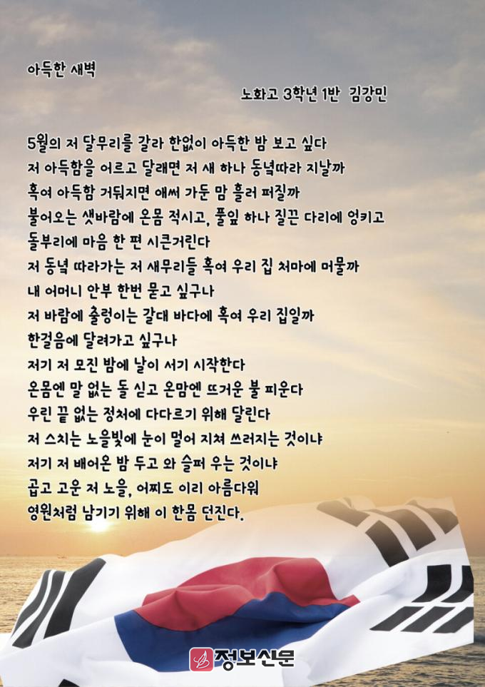 ![]() 완도노화고등학교, 제8회 육탄 10용사 故박창근 상사 추모기념 백일장 고등부 대상 수상 |