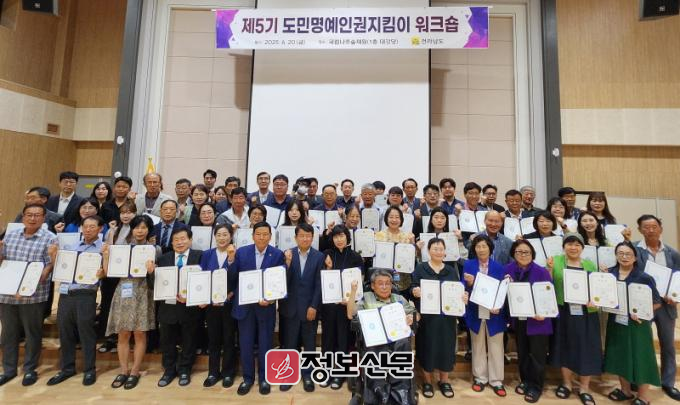 워크숍엔 2025년 신규 위촉된 제5기 인권지킴이(위촉인원 22개 시군 137명)를 비롯해 22개 시군 인권업무 담당 공무원 등 100여 명이 참석했다.
