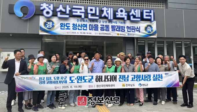 전남도는 고향사랑기금으로 조성된 ‘마을 공동 빨래방 공식 1호점’ 현판식을 지난 19일 완도 청산면 청산국민체육센터에서 개최했다.