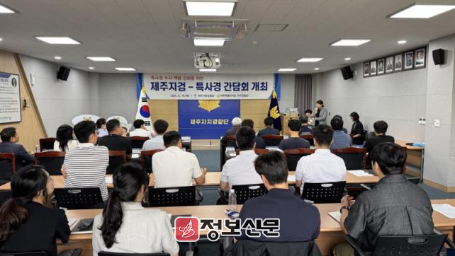 제주 자치경찰단은 19일 자치경찰단 회의실에서 ‘제주 특별사법경찰 수사역량 강화를 위한 간담회’를 개최했다. 이번 간담회는 특사경이 담당하는 사건의 안정적인 공소유지를 도모하고, 검찰과 특사경 간의 유기적인 협업체계를 강화하기 위해 마련됐다.