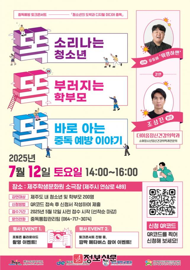 ![]() 제주특별자치도광역정신건강복지센터, 유튜버‘뭐랭하맨’과 청소년 중독예방 토크콘서트 개최 |