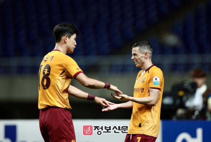 기다리던 선제골은 55분 터졌다. 광주의 자랑 아사니, 헤이스 듀오가 합작해 냈다. 아사니가 헤이스를 향해 건넨 공을 헤이스가 컷백으로 돌려줬다. 아사니는 정확한 왼발 슈팅으로 마무리했다. 58분 광주는 에너지 레벨이 떨어진 신창무를 불러들이고 박인혁을 투입하며 변화를 줬다.