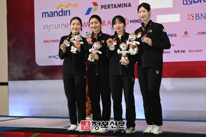 ![]() 여자에뻬 단체전 은메달을획득한 에뻬 대표팀 왼쪽부터 송세라(부산광역시청), 이혜인(울산광역시청),김향은(전남도청),임태희(계룡시청)(출처-국제펜싱연맹)