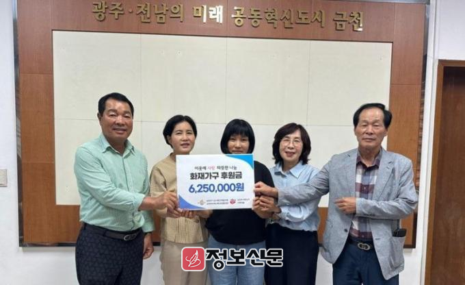 ![]() 나주시 금천면 지역사회단체 및 주민들이 최근 화재로 큰 피해를 입은 이웃 가구에 후원금을 전달하고 있다. (사진제공-나주시)