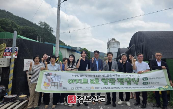 ‘아지트 8호’ 현판 전달식은 화순군 도곡면 내 아동 가정에서 진행되었으며 굿네이버스 전남북부지부 강성규 지부장, 황세은 팀장, 화순중앙로타리클럽 김대희 봉사분과위원장, 박철형 차기회장, 임승환 차기봉사분과위원장, 전라남도화순교육지원청 안상묵 체육복지팀장, 도곡면행정복지센터 강숙희 팀장, 화순군지역사회보장협의체 성치풍 민간위원장, 김인숙 부위원장, 양지연 간사가 참석한 가운데 이루어졌다.