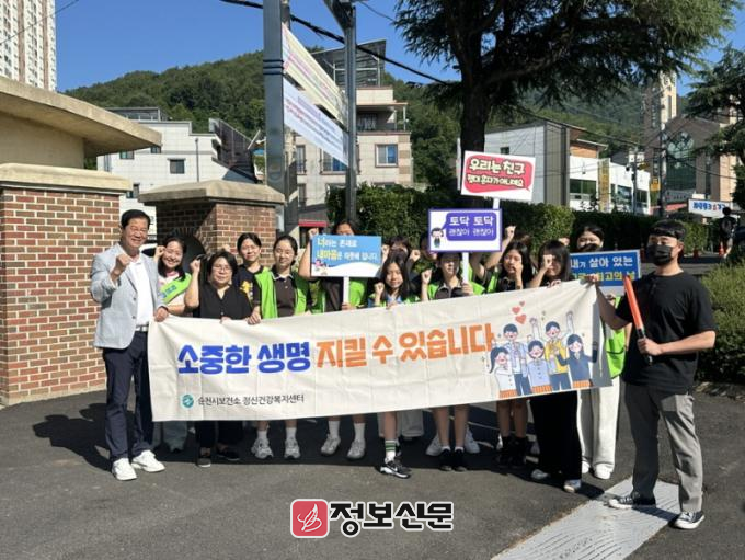 이번 캠페인은 특히 청소년들의 올바른 생명사랑 문화조성을 위해 관내 동산중학교 등 4개중학교와 협력해 학교 정문에서 등굣길 생명사랑 메시지를 전달했다. 학생과 교직원 등 2,000여명이 참여해 소중한 생명지키기에 앞장섰다.