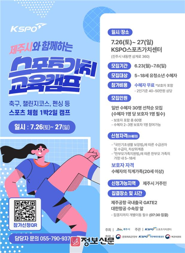 ![]() 제주시, 저소득 유·청소년 대상‘스포츠 가치교육 캠프’참가자 모집 |