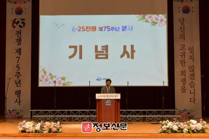 ![]() 여수시(시장 정기명)는 25일 오전 여수문화홀에서 6·25전쟁 제75주년 기념식을 가졌다. |