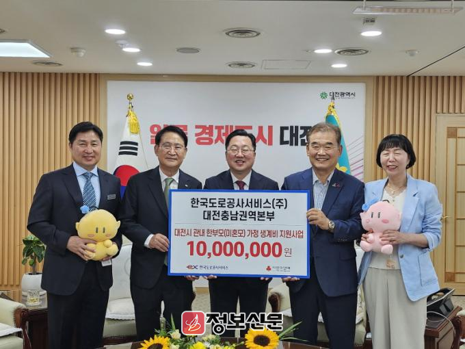 ![]() 한국도로공사서비스(사장 오병삼) 대전충남권역본부는 6월 24일 대전시와 미혼모·한부모 가정 지원을 위한 협약을 체결하고, 사회복지공동모금회에 후원금 1천만원을 전달하였다. |
