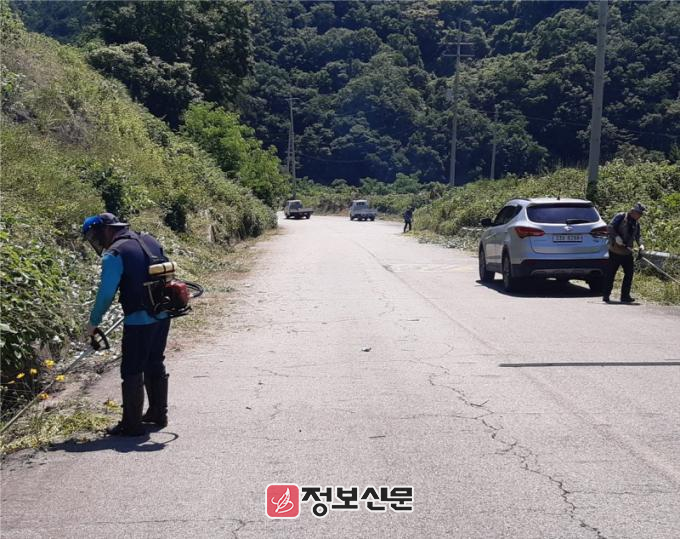 이번 작업은 유치면 이장자치회(회장 임한용)의 적극적인 참여로 도로 경관을 저해하고 차량통행에 방해되는 무성한 잡초와 덩굴류를 집중적으로 제거하였다.