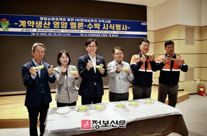 생산농가, HD현대삼호와 사내 협력사, 지역농협 등에서 150여 명이 참석한 가운데 열린 이날 행사는, 영암 대표 과일인 멜론 시식을 계기로 지역농산물 소비 촉진, 민·관 상생협력 실천, 지역순환경제 활성화 등의 의미를 되새기는 자리.