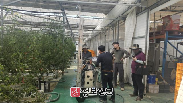 이번에 도입한 상하흔들식 무인방제기는 기존 수동 방제의 한계를 극복하고, 자동화된 방제 작업으로 약제 살포의 효율성과 정밀도를 크게 높인 것이 특징이다. 특히 상하로 흔들리며 약제를 고르게 분사하는 구조로, 토마토 식물 전체에 균일하게 방제약이 도달하도록 설계돼 병해충 방제 효과를 높인다.
