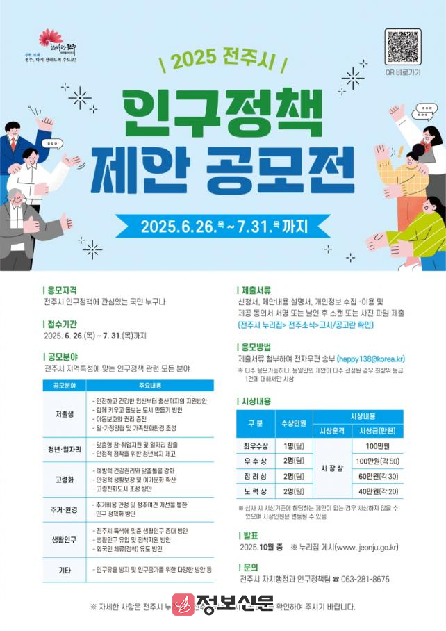 ![]() 전주시, 2025년 인구정책 제안 공모전 추진 |