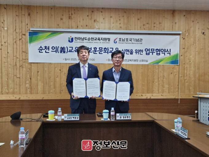 허동균 교육장은 “오늘의 협약은 형식적인 절차를 넘어, 우리 학생들이 역사의식을 품은 민주시민으로 성장할 수 있는 소중한 출발점”이라며 “순천교육지원청은 앞으로도 호남호국기념관과 함께 평화·인권·민주주의의 가치를 생활 속에서 실천할 수 있도록, ‘순천 의(義)’ 정신이 살아 숨 쉬는 교육을 지속적으로 추진해 나가겠다”고 밝혔다.