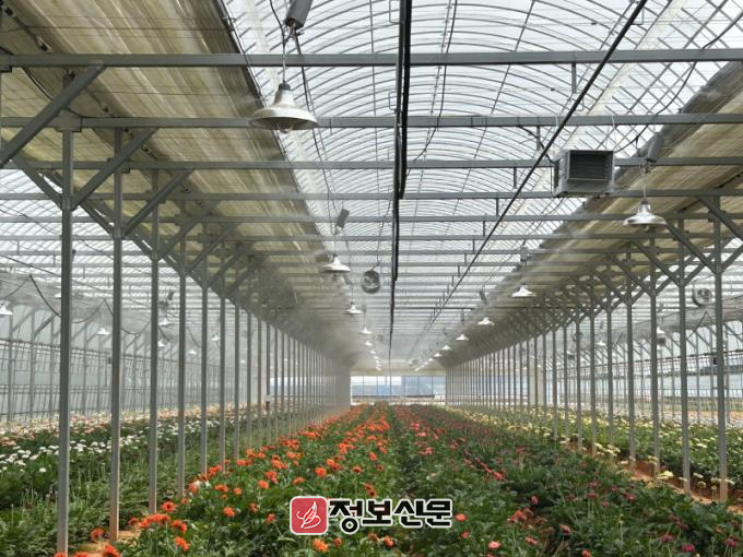 함평군은 26일 “군 농업기술센터가 최근 시범사업으로 거베라와 장미 재배 화훼 농가에 환풍기와 쿨링포그 등 온·습도 조절 시스템을 설치한 결과, 화훼 품질이 향상되고 농가 수익 증대 효과를 거두고 있다”고 밝혔다.