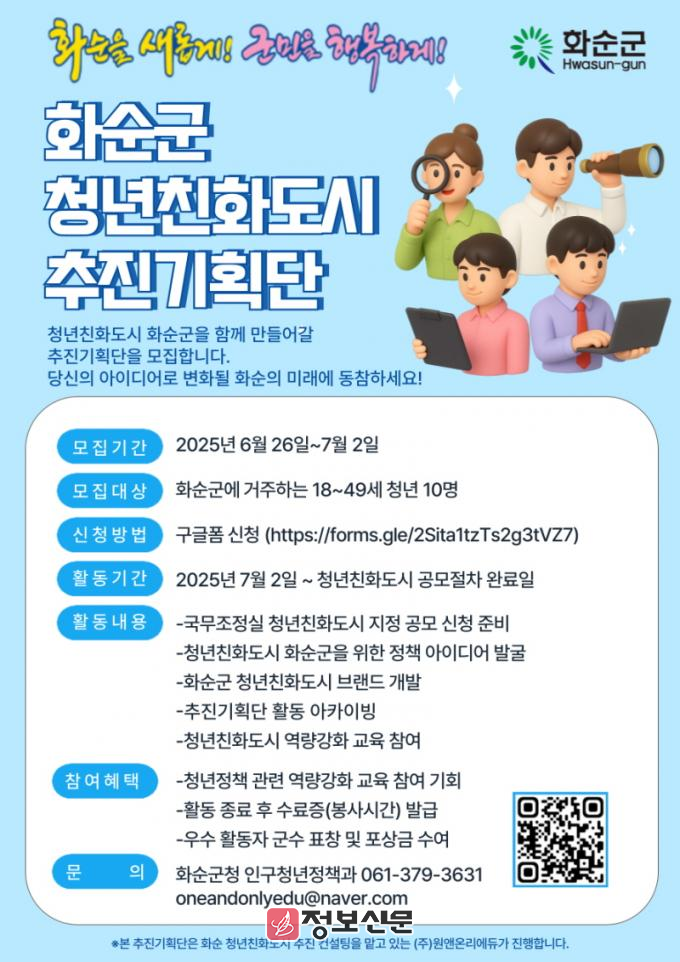![]() 화순군, ‘청년친화도시 추진기획단’ 모집 |