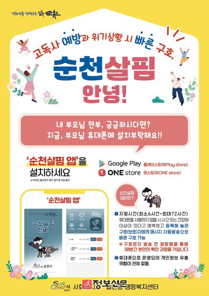 노관규 순천시장은 “인공지능과 정보통신기술을 적극 활용한 복지정책을 통해 사각지대 없는 두터운 사회안전망을 구축하고 있다”며 “지역사회 안에서 서로가 서로를 돌보는 ‘관계돌봄’ 문화를 확산시켜 모든 시민이 따뜻하한 삶을 누릴 수 있도록 노력하겠다”고 말했다.