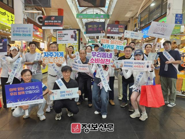 이번 캠페인은 제주도약사회서귀포시지부와 서귀포 3개 보건소 25여 명이 함께 참여하여 지역사회 내 마약류 오남용에 대한 시민들의 사회적 경각심을 높이고, 마약류에 대한 정확한 정보와 중독 예방의 중요성을 알리기 위해 다양한 홍보 활동을 전개했다.