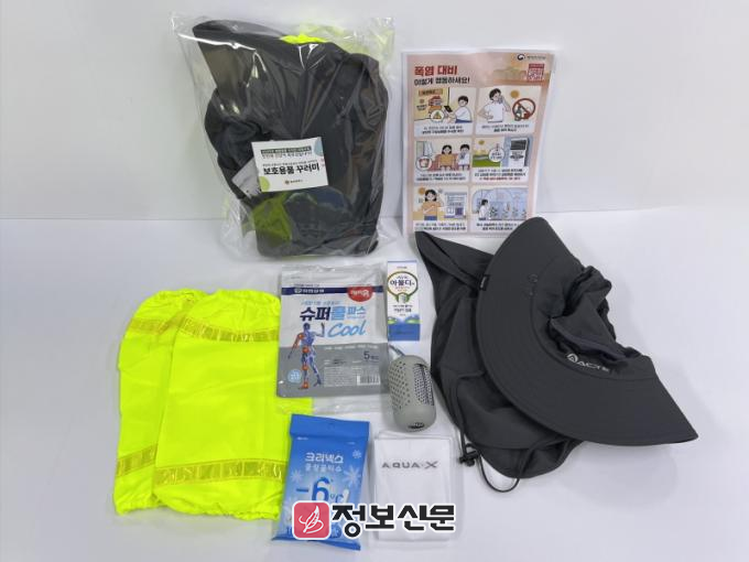 광주시는 7월부터 지역 폐지 수집 어르신 600여명을 대상으로 차양모자, 형광토시, 쿨링물티슈, 쿨타월, 쿨파스, 벌레약, 폭염 행동요령 안내문 등이 포함된 보호용품 꾸러미를 배부한다.