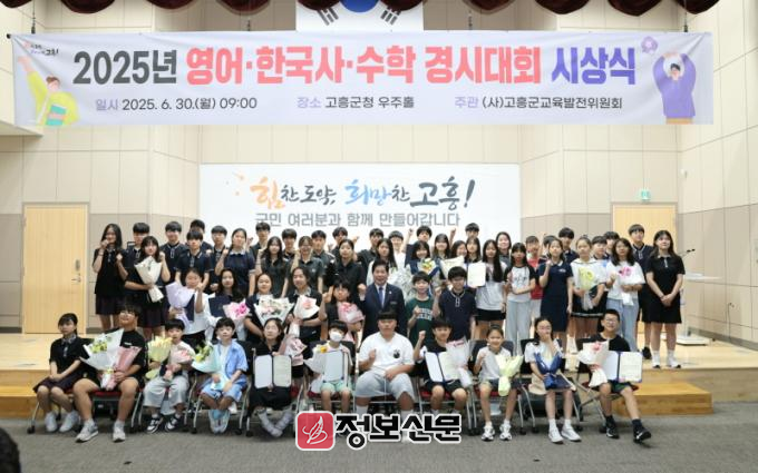 한편, (사)고흥군교육발전위원회는 경시대회 외에도 중고생 인터넷 강의 수강료 지원, 진로·진학 아카데미 운영 등 다양한 교육환경 개선사업을 추진하고 있으며, 초중고 입학축하금, 재학생 학년별 성적우수 장학금 등 각종 장학사업도 함께 지원해 지역 학생들의 성장을 뒷받침하고 있다.