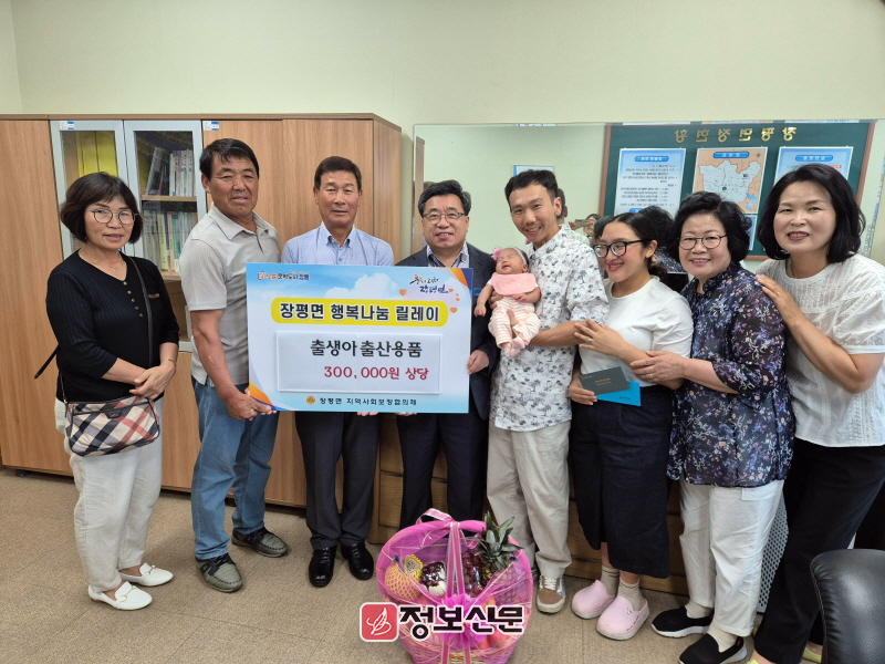 장평면지역사회보장협의체는 저출생으로 인한 지역 소멸 위기가 심각해지는 가운데 출산 장려 분위기를 확산시키고 아기의 탄생을 축하하기 위해 2025년부터 신규사업으로 출산가정에 과일바구니와 20만원 상당의 상품권을 지원하는 사업을 진행하고 있다.