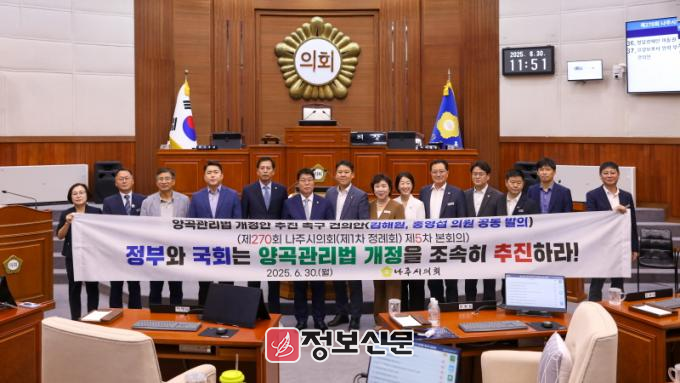 ![]() 나주시의회, ‘양곡관리법 개정안 추진 촉구 건의안’ 채택 |
