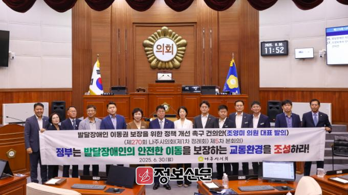 ![]() 나주시의회, ‘발달장애인 이동권 보장을 위한 정책 개선 촉구 건의안’ 채택 |
