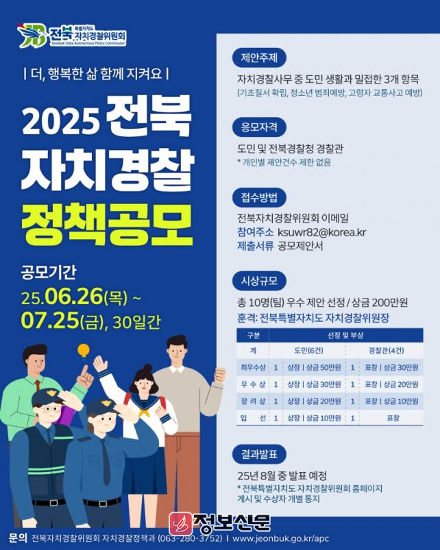 ![]() 전북특별자치도 자치경찰위원, 2025년 전북 자치경찰 정책 공모 |