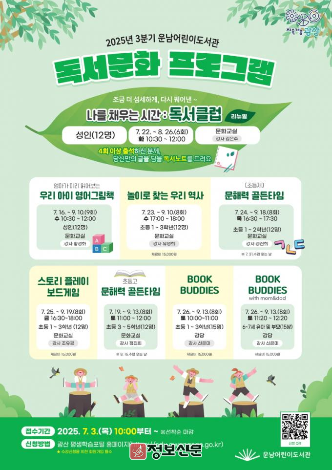 운남어린이도서관 관계자는 “여름방학 프로그램이 단순하게 재미를 넘어 아이들이 책을 통해 자기 내면을 들여다보고 다양한 세계와 따뜻하게 연결될 수 있도록 기획했다”며 “도서관이 아이들에게 마음이 자라는 공간이 되고, 가족들에게는 함께 성장하는 동반자가 되길 바란다”고 말했다.