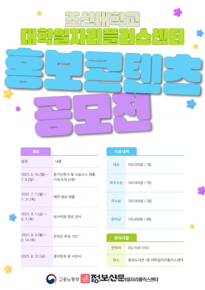 ![]() 조선대학교 일자리플러스센터, 홍보콘텐츠 공모전 개최 |