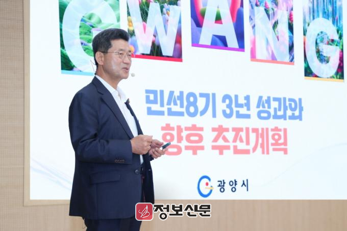 정 시장은 “지난 3년 동안 광양시는 여러 분야에서 괄목할 만한 성과를 달성했다”며 대표 성과로 ▲전남 유일 3년 연속 인구 증가 ▲이차전지 산업 메카 등극 및 청정 수소도시 조성으로 광양 미래 100년의 기틀 마련 ▲소상공인·중소기업 맞춤 지원 및 ‘기업하기 좋은 도시’ 구현으로 광양 경제 체력 강화 ▲체류형 관광객 유치를 위한 관광 인프라 확충 ▲소득이 보장되는 풍요로운 농촌 건설 ▲청년이 꿈꾸는 청년친화도시 조성 ▲전국 유일 생애복지플랫폼 1.0 완성(370개 복지정책) ▲문화·예술·체육 저변 확대 ▲전남 최고 수준 안전도시 및 탄소중립 도시 도약 ▲정주기반 확보 ▲‘MY광양’, ‘굿잡광양’ 등 시민편의 서비스 구축 등을 꼽았다.