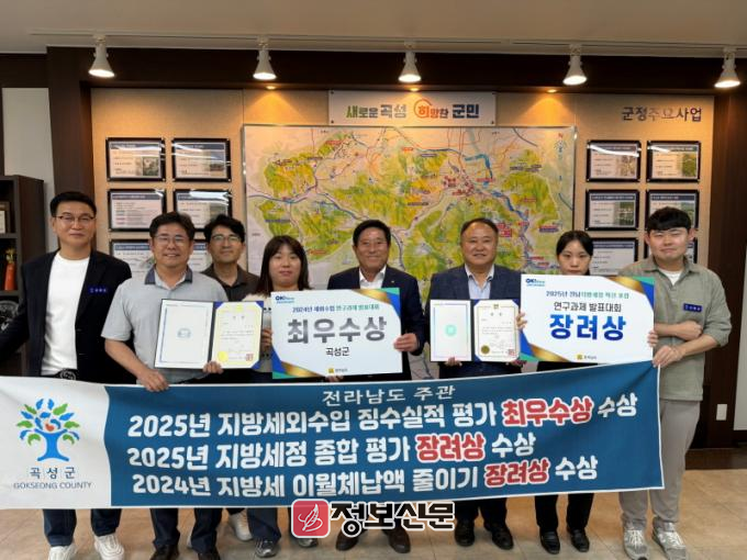 곡성군은 2025년 지방세외수입 징수실적 평가 최우수상에 이어 지방세정 종합평가 장려상, 지방세 이월체납액 줄이기 평가 장려상, 지방세정 혁신 포럼 연구과제 발표대회 장려상을 수상하였고 이에 따라 재정인센티브 총 4,000만 원을 확보했다.