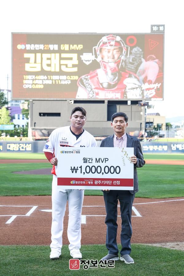 김태군은 지난 6월 18경기에 선발 출장해 11안타 9타점 4득점을 기록했으며, 빼어난 투수 리드로 6월 팀 평균자책점 2위(3.47)를 기록하는데 일조했다.