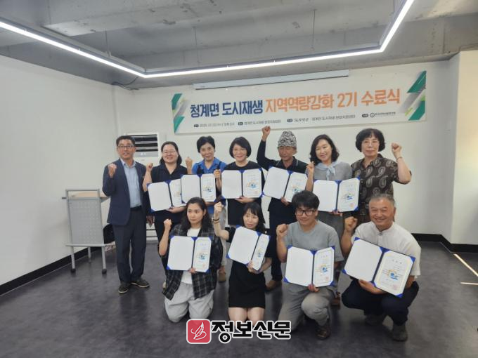 청계면 지역특화 도시재생사업의 일환으로 추진된 이번 지역역량강화 프로그램은 지난 1기에 이어 주민들의 자발적 참여를 통해 도시재생사업의 추진 기반을 마련하고 상권 활성화 방안 모색을 위한 사례 중심 교육으로 진행돼 총 9명의 수료생을 배출했다.