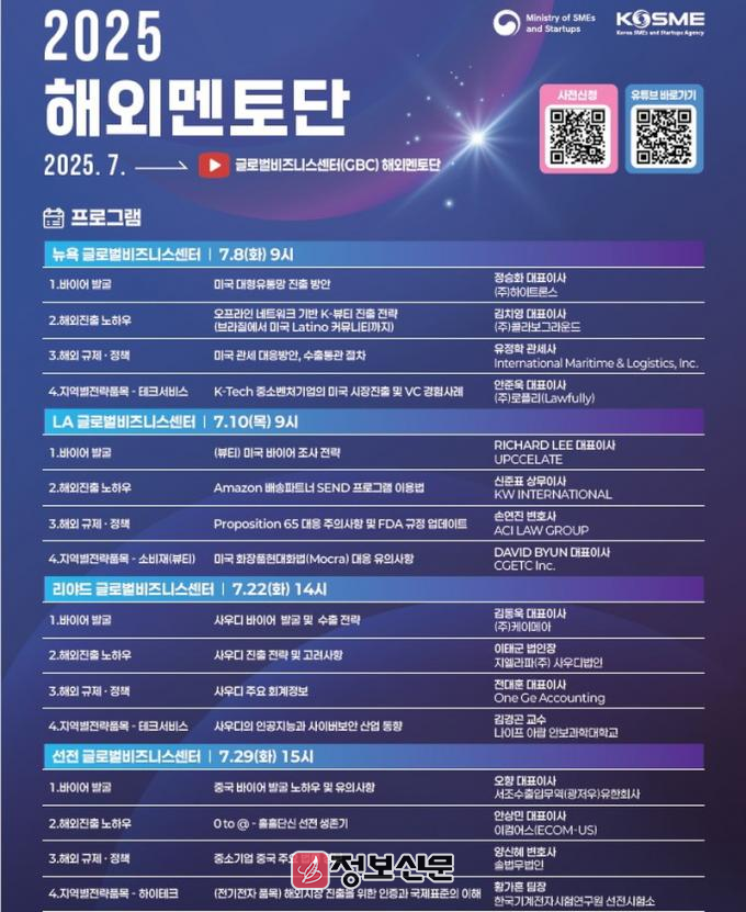 ![]() 중소벤처기업부, 2025년 해외멘토단 프로그램 신설 운영 |