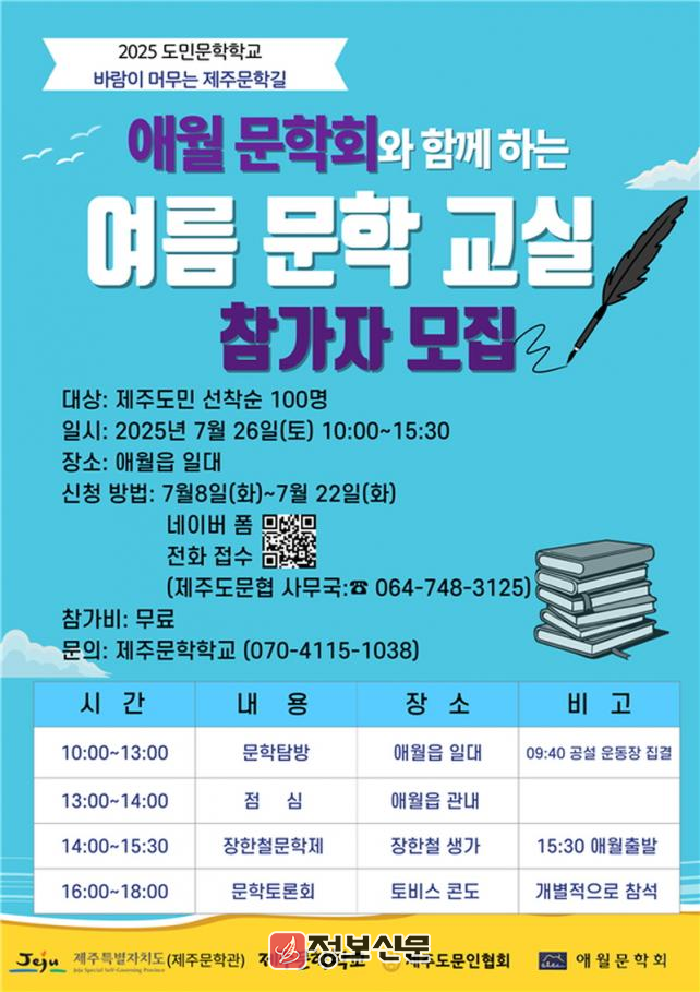 ![]() 제주문학학교, 애월문학회와 함께하는 여름문학교실 참여자 모집 |