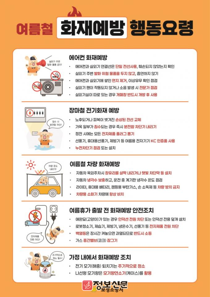 소방청 화재통계에 따르면 최근 5년 전체 화재대비 여름철(7~8월) 화재 건수는 14.9%(28,573건)이고, 사망자는 9.8%(155명)이다. 주로 전기적요인과 부주의에 의해 화재가 발생한 것으로 집계됐다.