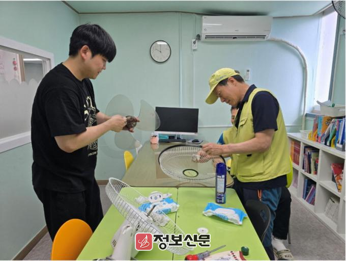 직원들은 아동센터의 2층과 3층 곳곳을 누비며 바닥을 정성껏 닦고 계단 물청소와 함께 주방도 깨끗이 청소하는 등 세심한 손길이 이어졌다. 특히, 무더운 폭염이 시작되고 있는 가운데 에어컨과 선풍기 등 각종 냉방기의 작동여부 점검과 청소까지 진행하며 다문화가정과 저소득층 아이들이 보다 더 시원한 환경에서 지낼 수 있도록 도왔다.